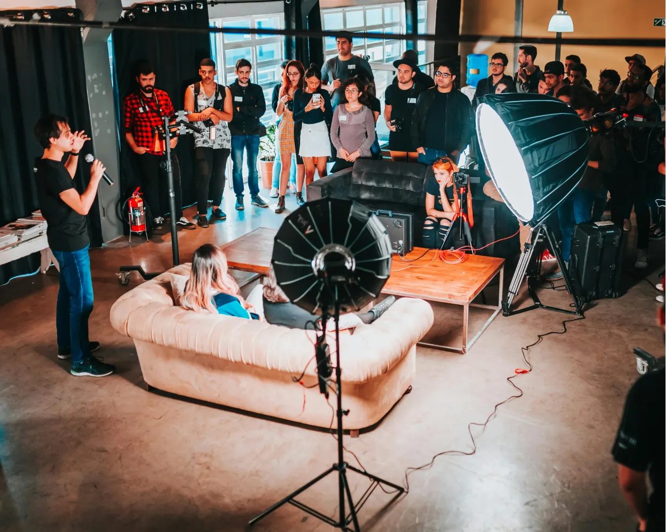 Visualisez un espace photo chic et moderne, rehaussé par des canapés design qui captivent l’attention.