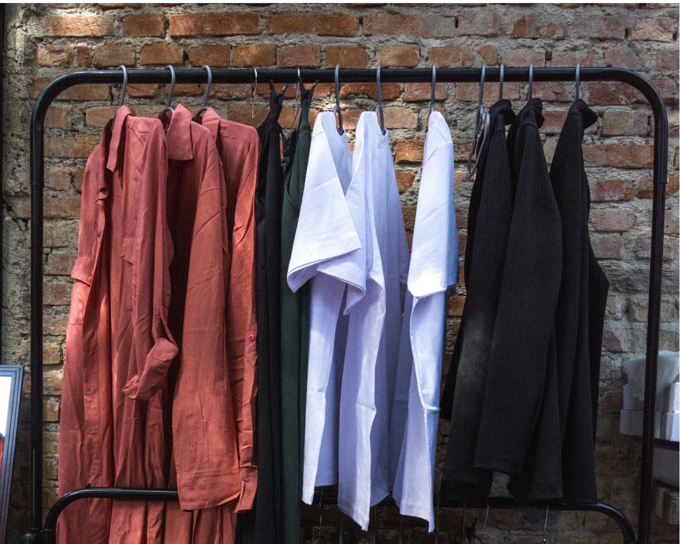 Visualisez des portants élégants mettant en valeur des collections de vêtements ou des uniformes pour un séminaire d’entreprise.